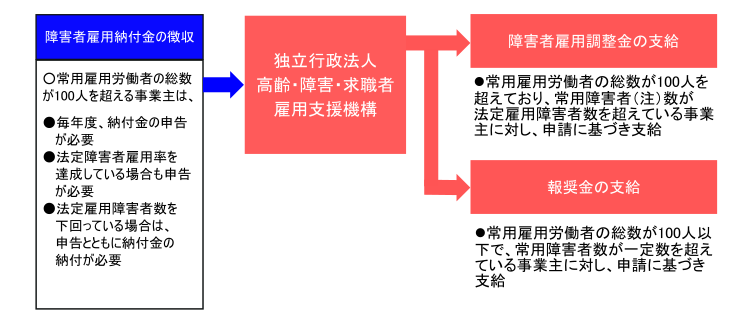 障害者雇用納付金制度の概要(一部)は以下の図のようになります。